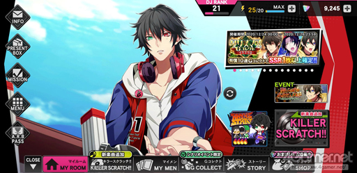 ストーリーコンテンツと対をなすのが「KILLER SCRATCH!!(キラースクラッチ)」です。こちらはリズムゲームで,好きな曲・難易度・パートを選んでプレイします。