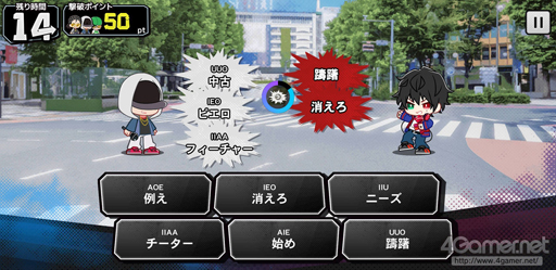 出題は「1ワードだけ」「4ワード連続」などさまざま。返すのが難しい敵ほど多くのポイントを持っています。難易度はNORMALとHARDとなり,HARDのときはより難しくなるものの,そのぶん撃破ポイントもたっぷり手に入れることができます。
