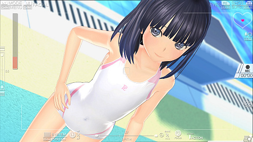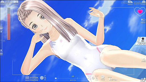 さらに,ホワイトスクール水着によるフォトセッションの模様も公開されている。1月8日に掲載した記事でお伝えしたように本作の発売日が3月14日に延期されており,そのお詫びとして,無料DLC「ホワイトスクール水着」の配信が行われる予定だ。掲載したスクリーンショットは,そのDLCを使ったものとなる。ゲーム発売後に無料でダウンロードが可能なので,配信されるDLCを使うとどのような写真が撮れてしまうのか,ぜひじっくり確認してほしい。