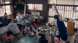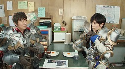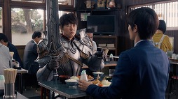 食事中の新井浩文さんと三浦春馬さん扮するビジネスマンですが、目玉焼きに合う調味料をめぐって会話がヒートアップ、いつの間にかお互い剣と鎧を身にまとい、一触即発のムードとなってしまいます。