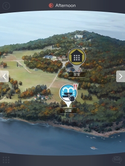 続いては「外出」だ。プレイヤーは1日のうち午前(Morning)と午後(Afternoon)の2回,外出できる。島にはいくつかの外出ポイントがあり,前作はストーリーを進めていくごとに行ける場所が増えるシステムだった。また,「!!」のマークがついている場所は,何か重要な出来事が起こったり,話題を入手できたりする。今作ではどんな流れになっているのか,とても楽しみだ。