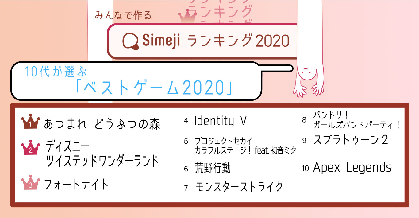 10代のSimejiユーザーが選ぶ2020のベストゲームトップ10。1位は「あつまれ どうぶつの森」