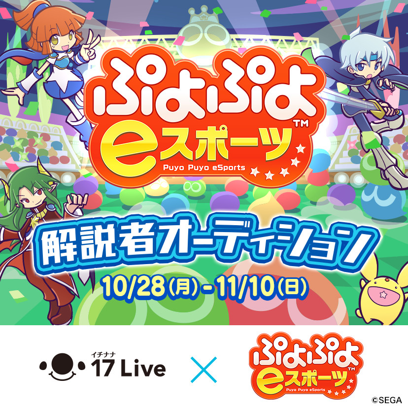 「ぷよぷよeスポーツ」公認解説者オーディションが「17 Live」で開催