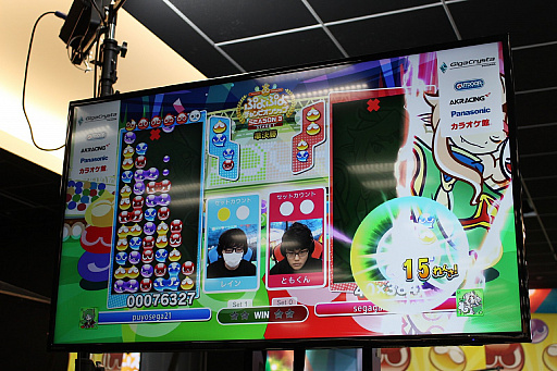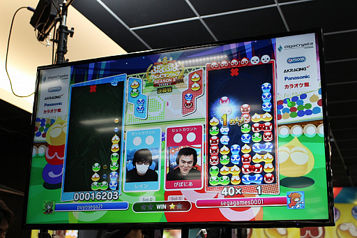 ![]() 15連鎖12万点をたたき出したともくん選手だったが,一歩及ばず勝利はレイン選手の手に |