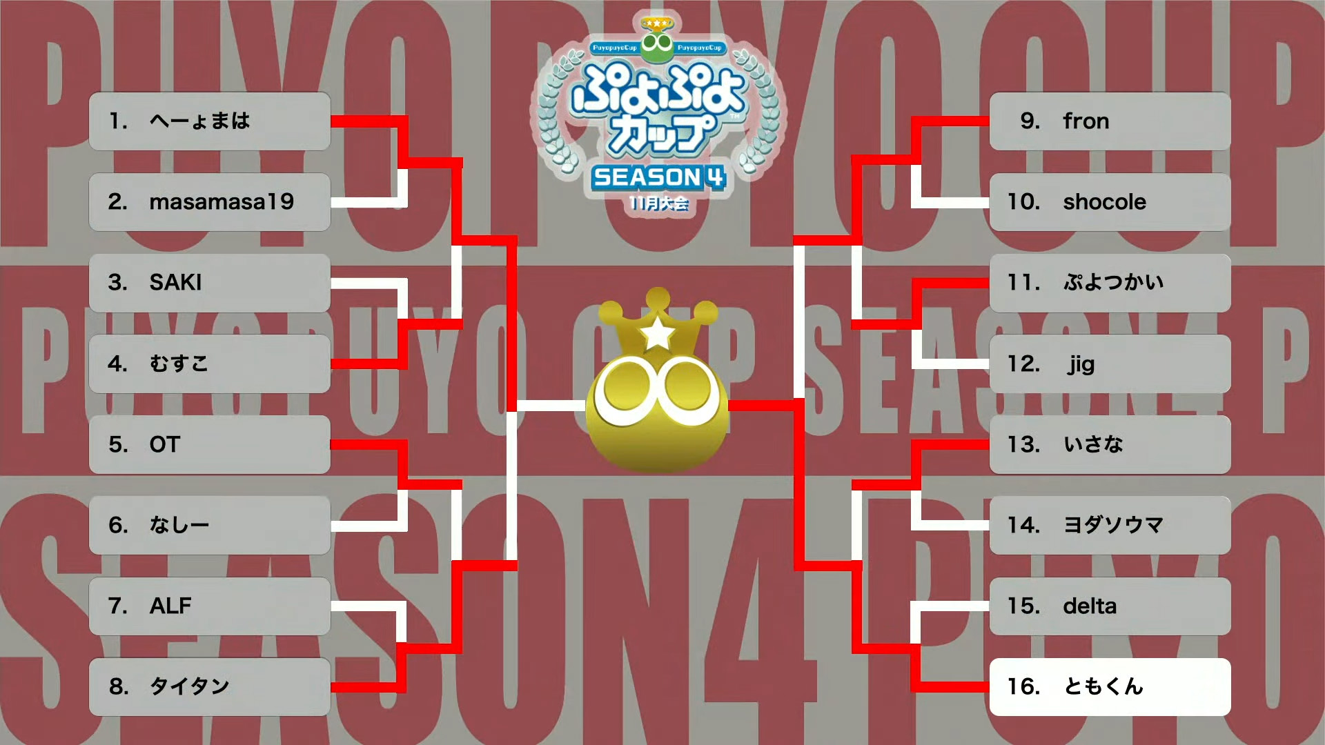 「ぷよぷよカップ SEASON4 11月大会」の公式レポートが到着。優勝はともくん選手