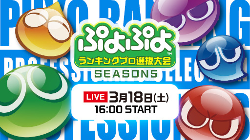 株式会社セガは、 ジャパン・eスポーツ・プロライセンス認定タイトルである、 対戦アクションパズルゲーム「ぷよぷよ」シリーズについて、 新たなプロを選抜する大会、 セガ公式「ぷよぷよランキングプロ選抜大会 SEASON5」を2022年3月18日(土)に開催いたします。