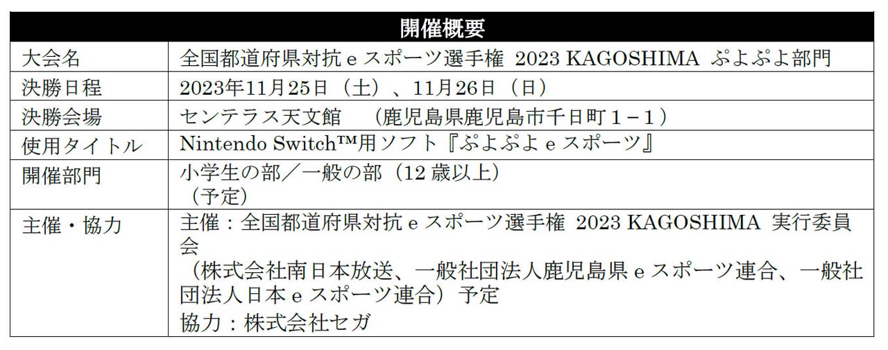 「ぷよぷよeスポーツ」が「全国都道府県対抗eスポーツ選手権 2023 KAGOSHIMA」の競技タイトルに