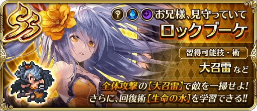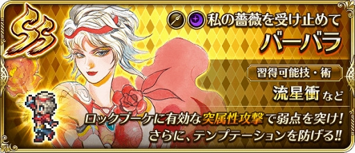 また,本日より七英雄ロックブーケが登場する常設イベント「魔塔ロックブーケ」もスタート。“Hard”のクリアでSスタイル「ロックブーケ」が獲得できる。さらに,対象キャラクターと特定のクエストに出撃することで,バトル後の能力値アップが2倍になるキャンペーンも実施中だ。開催期間は,イベント&キャンペーンともに2月8日4:00までとなっている。
