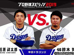 [2019/06/26 22:00]「プロ野球スピリッツ2019」,中日ドラゴンズの笠原祥太郎選手と鈴木博志選手が対戦するプレイ動画が公開