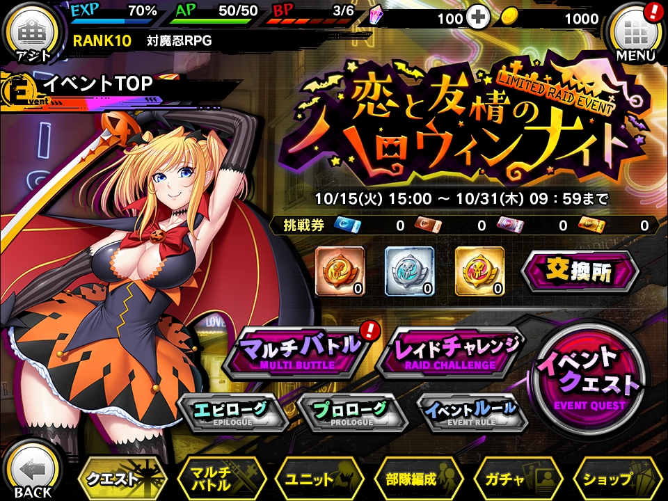 「対魔忍RPG」,期間限定イベント「恋と友情のハロウィンナイト」が本日より開催