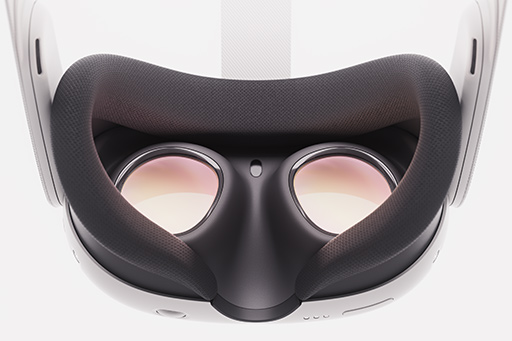 Meta Quest 3では,接眼レンズなどの光学系を,通称「パンケーキレンズ」と呼ばれる薄型レンズの組み合わせたものに変更したことで,Meta Quest 2よりも約40%薄くなり,映像の精細さも向上した。また,左右のレンズ間距離を物理的に調整する機構も改良されており,3段階の選択式だったMeta Quest 2とは異なり,無段階で任意の位置に調整できるようになった。