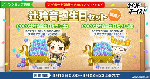 合同会社EXNOA(本社:東京都港区、CEO:村中 悠介、URL:https://games.dmm.com/)が運営するDMM GAMESは、生徒と奏でる青春育成ゲーム『ウインドボーイズ!』において、2023年3月13日(月)より、「Happy Birthday 辻 玲音 ガチャ」と誕生日セットの販売を開始しました。また、開催中のキャンペーンについてもお知らせします。