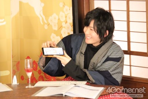 (座って)音ゲーってあまりやってこなかったんですけど,その良さに気づかせてくれたのが「あんスタ!!Music」(iOS/Android)だったんです。最初はなかった“超速度変化”なんてもう,僕のゲーム嗜好とめちゃくちゃ合うんですよ!(ガタッ)