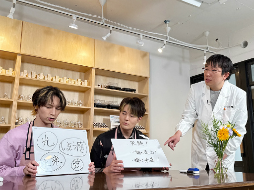 カメラが回っていない間も,北村さんと駒田さんは五味さんに熱心に質問を投げかけていた。香りのことに留まらず,香水の原料など多岐にわたる話題に広がり,お二人の強い好奇心と真摯な姿勢が伝わってきた。3人のやり取りのなかで具体的な香りが固まっていく興味深いプロセスは,ぜひ配信本編でご覧いただきたい。
