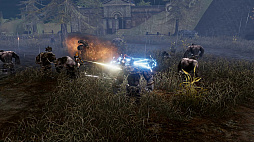本作は,MMORPGながらバトルロイヤルモードが最大のウリとなるタイトルだ。対戦形式は,最大30人の中で生き残りを目指すソロプレイモードと,3人1組でチームを組んで,10チームで競い合うモードがあり,今回はチームでのバトルロイヤルが初公開されていた。