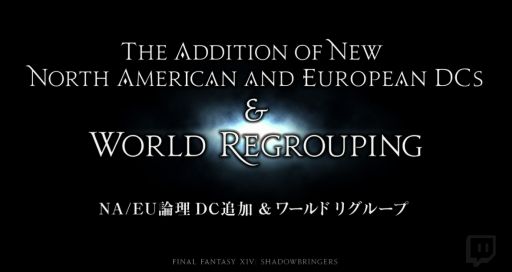 また,国内のプレイヤーにはあまり関係ないが,NAとEUの論理データセンターの追加も発表された。どちらもプレイヤー数の多さに,データーセンターが負荷に耐えられない状態にまでなってしまったため,論理データセンターを1つずつ追加するとのことだ。そのため,NAとEUのデータセンターでは,ワールドリグループを行うことも発表されており,詳細は明日のプロデューサーレターライブで吉田氏から説明があるようだ。