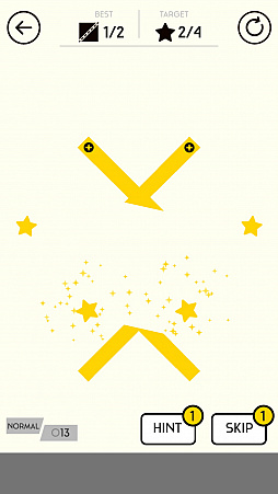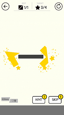本作は,画面内の図形をスワイプで切断して,クリア条件を達成するゲームだ。序盤のステージは,切断した図形を画面内の“星”にタッチさせるとクリアとなる。