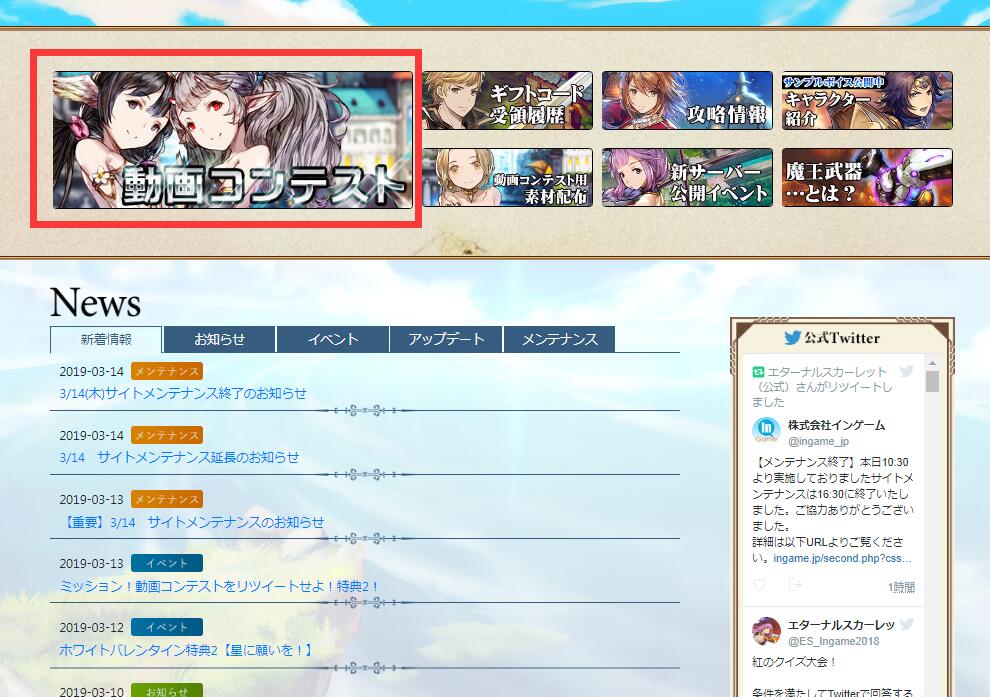 「エターナルスカーレット」の「実況動画コンテスト」イベントをリツイートしてアイテムを入手しよう