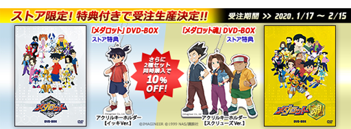 TVアニメ放送開始から20周年を記念して発売されるアニメDVD-BOXの受注販売がメダロットの公式グッズ販売サイト「Medarotters Store」で開始。
