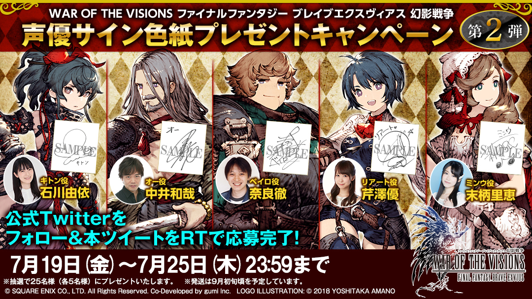 「WAR OF THE VISIONS」,声優のサイン色紙プレゼントキャンペーンの第2弾