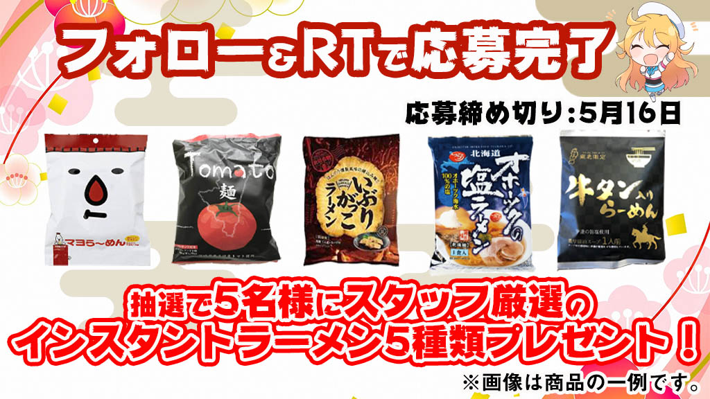 オンラインクレーンゲーム「どこでもキャッチャー」でインスタントラーメン特集開催。Vtuberとのコラボ企画も