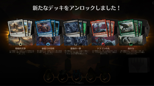 また,デイリーのクエストを消化することで,より強力な2色の初期デッキも配られるようになる。ゲームに慣れてきたら,それらの2色デッキにも触ってみると良い。マジックの世界に存在するさまざまなギミックを楽しめるはずだ。
