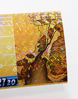 ゲームデータをセーブできるカード「セブカ」を使ってプレイすると、配出されるカードの「ログカード」部分に、ランダムに「宝の地図」が配出されることがあります。配出されたら、店頭キャンペーンやイベントで配布される「お宝解読リフィル」や筐体に設置されている「お宝解読シート」と組み合わせると宝のありかが分かる仕組みになっています。この宝のありかは、ゲーム内の「冒険マップ」と連動しており、「宝の地図」に表示されている場所と同じ所を「冒険マップ」上で探して、特別なアイテムを入手することができます。