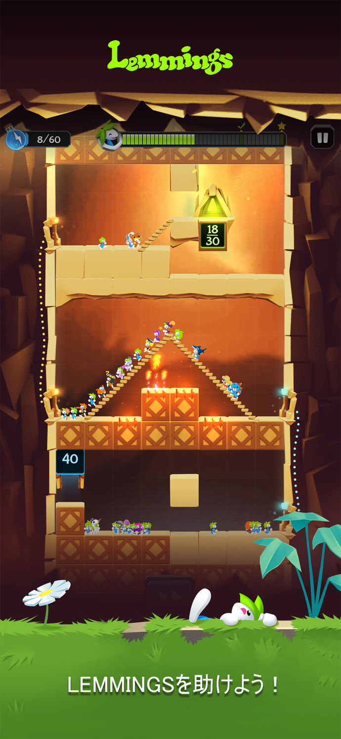 パズルゲーム「Lemmings」がスマホ向けアプリで登場。何があろうと真っ直ぐ進んでしまうレミングたちを無事にゴールまで導こう