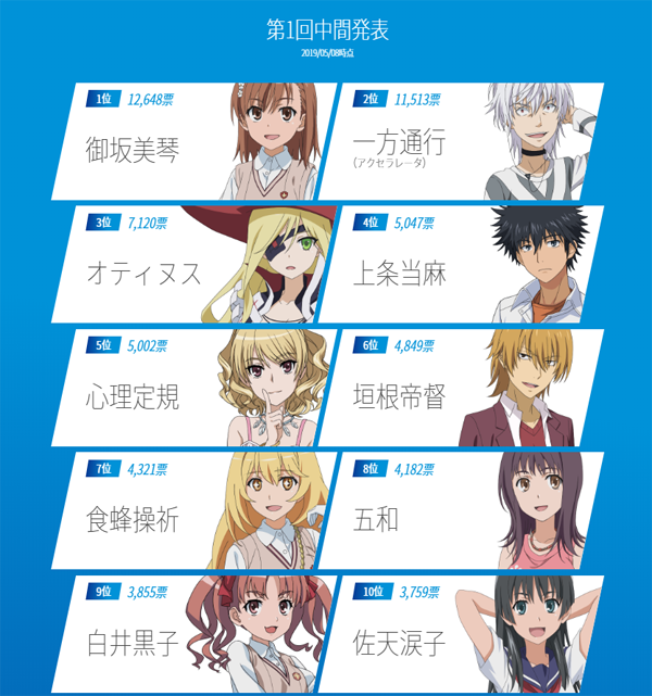 「とある魔術の禁書目録 幻想収束」,キャラクター総選挙の中間発表が公開