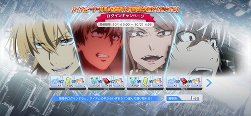 メインストーリー禁書目録編 第16章開始を記念し、「メインストーリー禁書目録編第16章開始記念ログインボーナス」キャンペーンを実施いたします。期間中ログインすると、アイテムの中からいずれか1つ選んで獲得することができます。