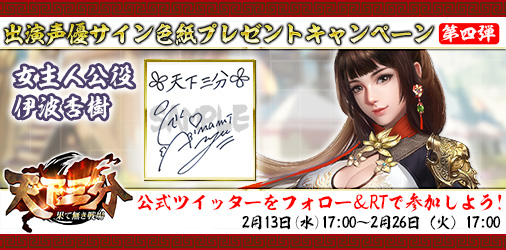 ブラウザゲーム「天下三分-果て無き戦場-」,伊波杏樹さん演じる女主人公の情報を公開。サイン色紙プレゼントキャンペーンも