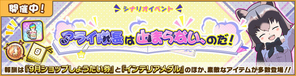 「けものフレンズ3」,シナリオイベント“アライ隊長は止まらない、のだ!”開催