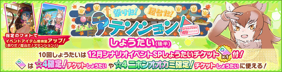 「けものフレンズ3」,期間限定しょうたい(ガチャ)祭りだ!屋台だ!アテンション!しょうたい(後半)開催