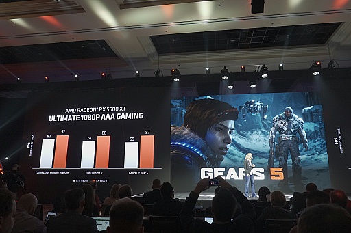 Radeon RX 5600 XTについてAMDは,「最新のシェーダヘビーなグラフィックスのゲームをフルHD解像度,フルスペックでプレイすることができる性能を持つGPUである」と説明する。下位モデルのRadeon RX 5500シリーズについてもよく似た説明をしていたので,5500シリーズと5600シリーズのターゲットプレイヤーの違いが,今一つイメージしにくいかもしれない。