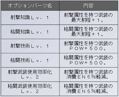 オプションパーツ名/内容