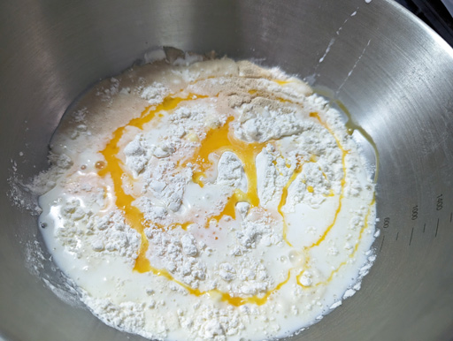 牛乳と卵を入れて全体を混ぜる