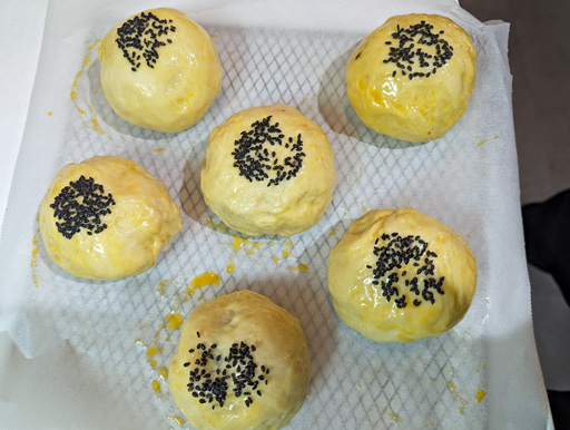 卵を塗り,ごまをつける