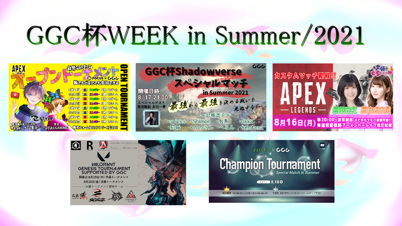 「Apex Legends」「Shadowverse」「VALORANT」の大会・GGC杯WEEK in Summer/2021が8月14〜22日に開催
