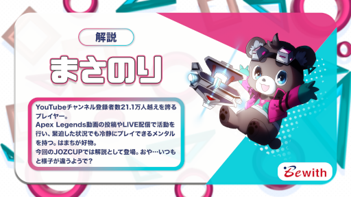 この度、ビーウィズ株式会社が主催する「Apex Legends」の大会「JOZ CUP(ジョーズカップ)レイクALSA Edition」を、株式会社RATELにおいて運営・放送することが決定いたしました。