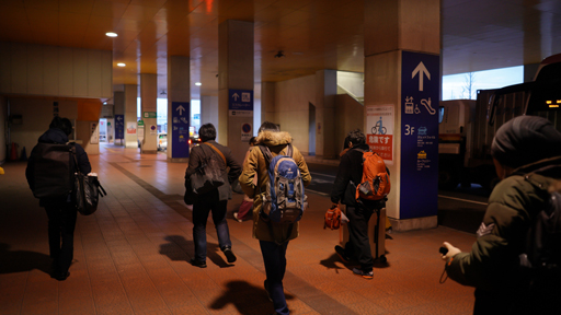 4月2日23:00。夜行バスに揺らされること約6時間30分で,新潟駅近くの新潟港に到着する。4月3日6:00。カーフェリーに揺さぶられること約2時間30分で,佐渡島の両津港に到着する。いずれも澄まし顔で乗り切れたのは,1人か2人といったものだ。東京から新潟まで新幹線なら2時間程度,港から港へも高速船なら1時間程度だが,全員の動向が合致するスケジュールはこれしかなかった。