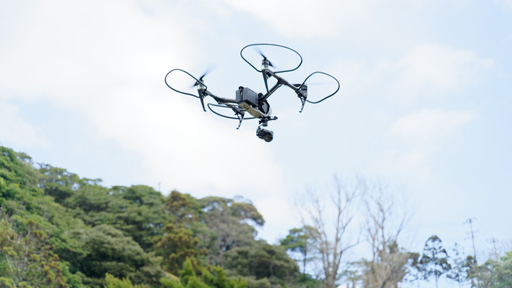 気温はなにも人だけを苦しめたわけではない。今回は島に久々の強風が吹き荒ぶ“当たりの日”を引いてしまったために,ドローンによる空撮が滞りなく進められるのかにも懸念があった。しかし,男子たちの心と視線を釘付けにしたドローン界のフラッグシップ機「DJI Inspire2」は,人間の不安なんてどこ吹く風で,気持ちよさそうに空を泳いだ。