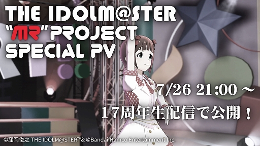 7月26日(火)21時より生配信の「アイドルマスター」シリーズ17周年記念生配信「17th Anniversary P@rty!!!!!」にて、「MRプロジェクト」の宣言を記念し、今後の活動のデモンストレーションとなるアイドル天海春香を起用した特別PVを公開いたします。