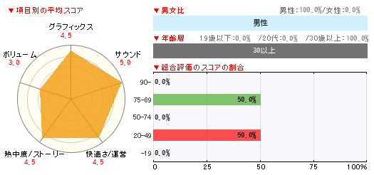 グラフィックス サウンド 快適さ/運営 熱中度/ストーリー ボリューム 4 5 4 4 3 -