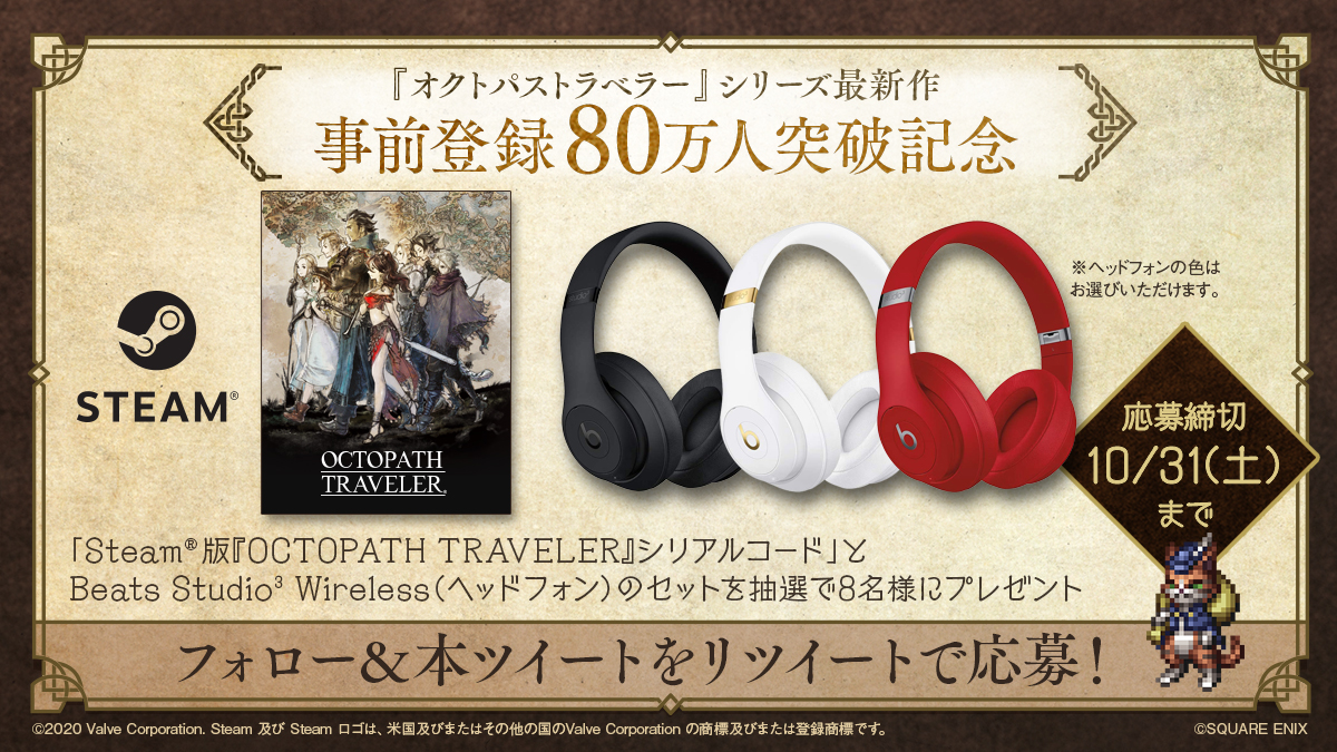 「OCTOPATH TRAVELER 大陸の覇者」,事前登録80万人突破記念キャンペーンが開催