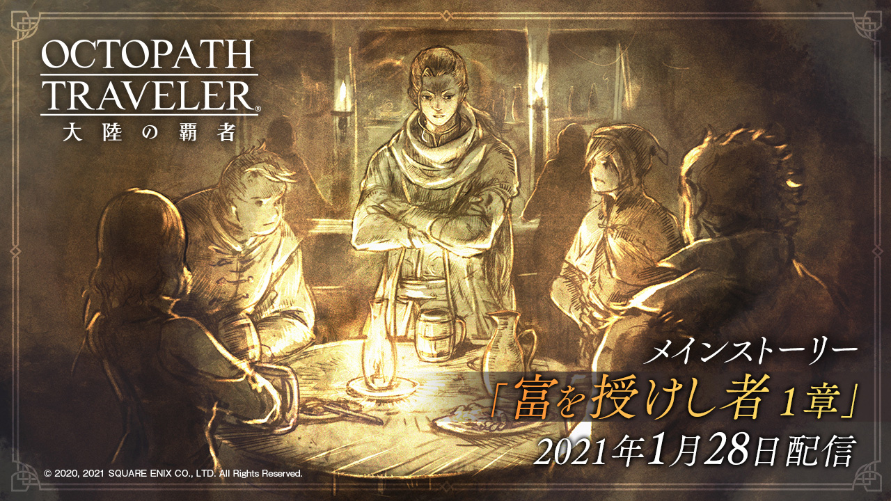 「オクトラ 大陸の覇者」,メインストーリー「富を授けし者 1章」が追加。旅人ザンター&ポーラが登場