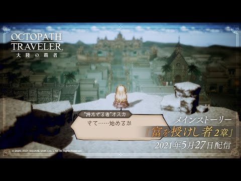 スマートフォン向けRPG『OCTOPATH TRAVELER (オクトパストラベラー) 大陸の覇者』において、新たなメインストーリー「富を授けし者 2章」や新たな旅人“ムールゥ”を追加いたしました。また、今後の配信ロードマップも公開いたしました。