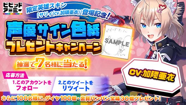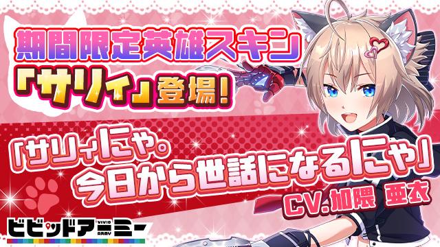 「ビビッドアーミー」,限定英雄スキン「サリィ(CV:加隈亜衣)」が登場