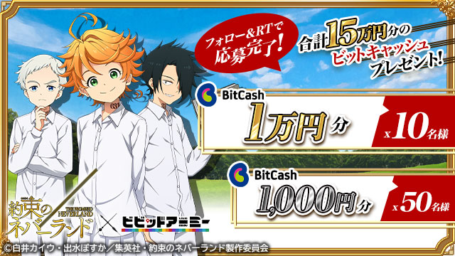 「ビビッドアーミー」×「約束のネバーランド」コラボが本日スタート。合計15万円分のBitCashが当たるTwitterキャンペーンを実施