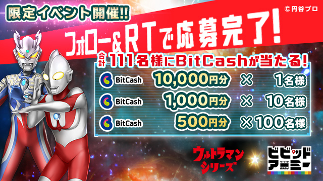 「ビビッドアーミー」,ウルトラマンシリーズ限定イベント記念でBitCashが当たるTwitterキャンペーンが開催
