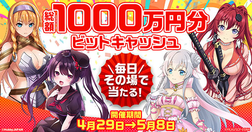 G123『ビビッドアーミー』や『クイーンズブレイドリミットブレイク』で総額1000万円分電子マネーがその場で当たるゴールデンウィークキャンペーン開催!